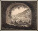 Blick über das Tal. Anonym. Aquarell auf festem Papier, 19. Jh. 9 x 12,3 cm. - Sehr feines Aquarell, leicht fleckig, schwache Altersspuren.