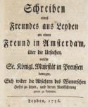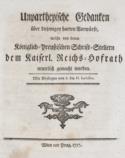 über eines Schweitzers Betrachtung derer Bewegungsgründe des gegenwärtigen Krieges. O.O.u.Dr. 1757. Kl.4°. 24 S. Ohne Einband, ausgebunden.