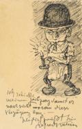 Kubin, Alfred(1877 Leitmeritz - Wernstein 1959). Der Tod und der Reisigsammler. Tusche und Aquarell auf Bütten (Landkartenfragment). 33,5 x 39,5 cm. Sign. u. dat. unt. re. "Kubin (19)36". Unt. li. bet. u. bez. "Der Tod und der Reisigsammler - 1571". - Le. gebr., tls. Randdefekte, Stecknadellöcher in den Ecken, kl. Löcher imß unt. li. Eck. Verso Spuren alter Mont., sowie beschmutzt. [...]