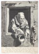 Surat."Suratte". Ansicht über den Fluß Tapti mit Personenstaffage. Kolor. Kupferst. aus Baldaeus, "Wahrhaftige ausführliche Beschreibung der berühmten ost-indischen Küsten Malabar und Coromandel..." Amsterdam 1672. Qu.Fol. [...]