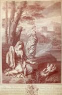 143-4570 Unbekannter Zeichner (17./18. Jhdt.). Susanna im Bade von den beiden Alten belauscht. Tuschzeichnung. Im Brunnenrand undeutlich sign. 10,3 x 19,5 cm. Punktuell auf Karton mont. - Kl. Fleck in der Darstellung. Untere linke Ecke mit Falte. [...] (Künstlergraphik)