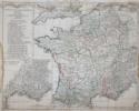 Carte de France, dievisée en ses provinces. Grenkolor. Kupferstichkarte v. 4 Platten n. u. bei J.B. de la Fosse, Paris 1775. 90 x 95 cm. Mit gr. allegor.-herald. Tite lkart. unt. li. [...]