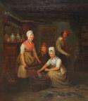 Frankenthal, um 1770, polychrome Aufglasurbemalung mit Manierblumenbouquet im Spiegel, Goldrand, zwei gerundete Henkel, unterglasurblaue überkrönte CT-Marke mit Beizeichen 7, Ritzzeichen H 2, H. 7,5 cm, D. 16,5 cm. Brandrisse und -flecken, minimaler Goldberieb, Kratzspuren. [...]