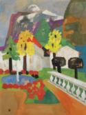 (1858 Bönigheim - München 1922) zugeschrieben. Blick auf Berg und Hotel. Wohl Interlaken. Aquarell mit Bleistift auf Papier. 25,5 x 16 cm. Punkt. unter Passep. mont. - Untere rechte Ecke mit kleinem Einriss. Etwas lichtrandig. [...]