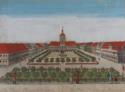 Ansicht von einem Feldweg am Berg über das Schloss auf die Altstadt. Radierung v. Edouard Willmann (1820-1877). 35 x 53,8 cm, Blgr. 54 x 69,5 cm.