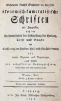 Oeconomisch-technologische Encyklopädie... Tl. 123: Von Reseda bis Rindviehstall. Brünn, Traßler 1820. Mit 4 Kupfertaf. a. 1 Faltbl. 1 Bl., 752 S. Ldr. d. Zt. mit Rverg. und Rsch. (Tls. berieb. u. best.).