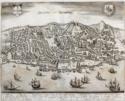 Kupferstichkarte v. Vern. Alvero Secco aus "Archontologia Cosmica", um 1650. Mit 2 Wappen, 2 Windrosen, Schiffstaffage, Neptun auf einem Walfisch reitend, Meilenzeiger und Kartusche. 28 x 36,5 cm. - Re. Rd. mit Knickfalte. Stellenw. stockfl.