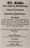 Weiss 3247 (nennt nur XVI röm. num. S.). Erste von R. bearb. Ausg., die beiden ersten Ausg. ersch. noch anonym. - "Aus den Papieren der verstorbenen Verf. des Augsburgischen Kochbuches, Sophie Juliane Weiler...". - Tls. leicht fleckig, einige beschr. w. Bl. nachgeb.