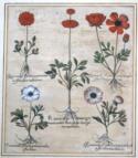 Dabei: 1 Bl. Lilium wran multifol floruit. Dass. aufgez., mehrf. gefaltet u. knittrig. - 5 Bl. mit Aaronstab, Weißwurz u. Queller aus einem engl. Pflanzenwerk. Kupferstiche, 17. Jh. Fol. - Weiße Ränder tls. etw. fleckig. - Gräser u. Grassamen. 1 gefalt. Rad. aus einem Werk nach Linné, 18. Jh. Qu.Kl.Fol. Zus. 22 Bl.