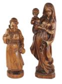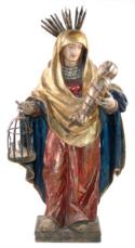 um 1900. Heiligendarstellung mit Fahne u. brennendem Gebäude. Sowie Darstellung wohl von Judas mit Hahn. Beide hinter Glas gerahmt. 25 x 21,5. Wohl Österreichischer Künstler, Linzer Raum.