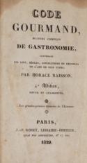 Vicaire, Bibl. Gastronomique Sp. 448 (Ausq. 1834). - Satire auf die Essgewohnheiten, etc. der "Gentlemen". - Etw. gebräunt, stellenweise etw. fl. Exlibris.
