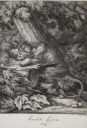 Die wilde Kaz oder Kuder wird im Alter sehr gros, haben 3. 4. bis 6. Iungen. Kupferstich v. J.E.Ridinger, Augsburg (1736). 27 x 41 cm. Th. 219. - Aus "Betrachtung der wilden Thiere...".