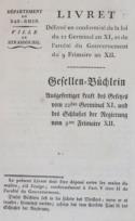 Darstellung der versch. Handwerksgruppen beim Festzug am 25. Juni 1840. - Taf. num. 1-53 (10/11, 22/23, 34/35 u. 52/53 jwls. auf 1 Bl.), es fehlen 48 u. 49. - Gebrauchsspuren, tls. angestaubt u. knittrig, tls. fleckig u. randrissig. - Selten. - Dabei: 12 Beilagen zum Thema Straßburg, zus. 59 Bl.
