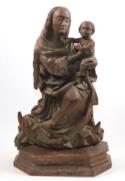 Metallguss, mit losem Holzsockel. Holzs. bez. Old Sacramento Imp. Bison fein detailliert. minim. Farbabpl. Sockel aus altem Stück eines Baumstammes. Bison 20x13 cm. Holzs. 24x15x5,5 cm.