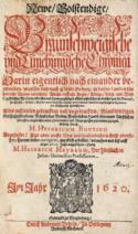 Lipperheide Rc 21. Loewe 4351. Heydenreich II, 353. Erste Ausgabe. - Die 2 Kupfertaf. zeigen einen Umzug; die sonst auf 2 dplblgr. Taf. befindlichen Wappenkupfer sind hier ausgeschnitten und an den zugehörigen Stellen in den Text geklebt, wozu offenbar von vornherein beim Satz u. Druck Lücken gelassen wurden. - Tls. gebräunt u. vereinzelt etw. wasserrandig, im Bug mit Papier verstärkt, Titelbl. mit unterl. Randläs., 1 Tafel mit Fehlst., mehrere Bibl.-St.