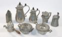 Ausgussdeckel mit ungedeuteter Meistermarke. Bodenrosette innen. Deckel mit Bajonettverschluß. Fein gravierter Blumendekor. Zinn. Leichte Alters- u. Gebrauchssp.