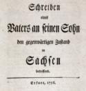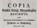 Copia Memorialis des Königl. Preuß. und Chur-Brandenburgischen Comitial-Gesandten, welches dem Reichs-Convent zu Regensburg im Dec. 1756. übergeben ist. Das Reichs-Constitutions-widrige Betragen des Kayserl. Reichs-Hofraths gegen Se. Königliche Majestät von Preußen, die Allerhöchst Denenselben abgedrungene Maasregeln in Ansehung des Wiener und Dresdener Hofes betreffend. Bln., Henning 1756. Kl.4°. 44 S. Ohne Einband, ausgebunden.