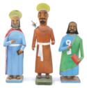 (polnisch, geb. 1951). Frasobliwy (Denker). Holzskulptur, polychrom gefasst, (19)86. 30 x 13 x 13 cm. Unt. sign., ortsbez., bet. u. dat. - Etw. angestaubt.